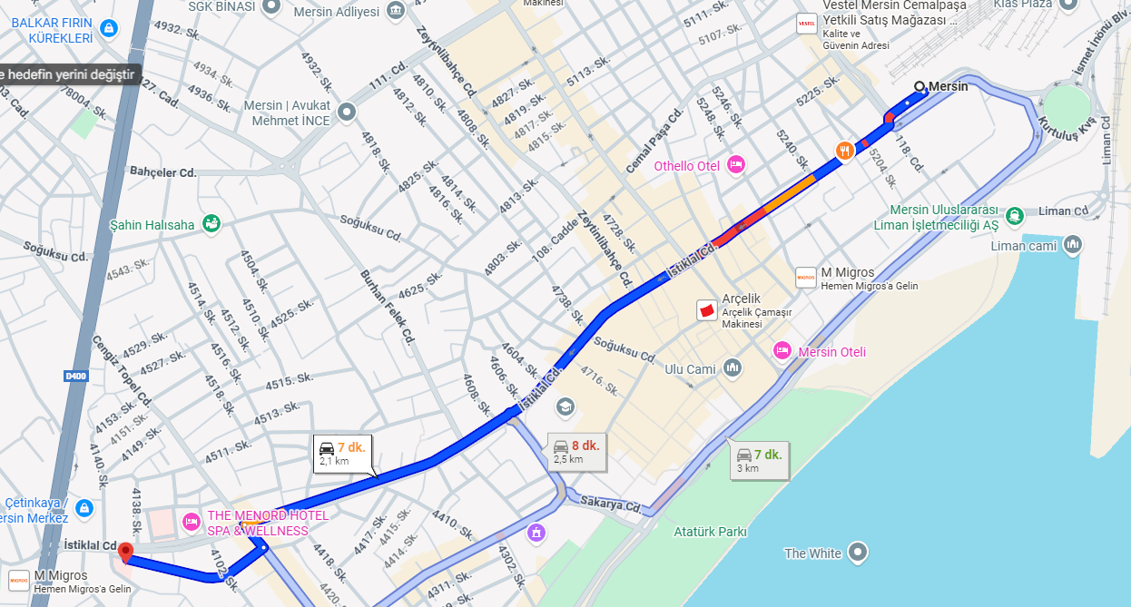 • 1.Çerve Yolu Sarı : Eski Otogar, Devlet Hastanesi, Çetinkaya ve Özel Mersin Vizyon Göz Hastanesi